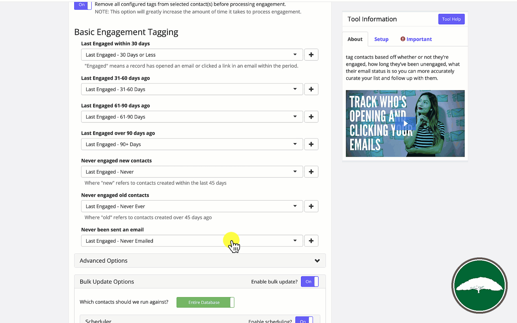 But, the other way this differs is that it runs on a schedule you can choose, and then it resets the tags. So, if someone re-engages, it'll automatically remove the unengaged tags as it re-evaluates your database.