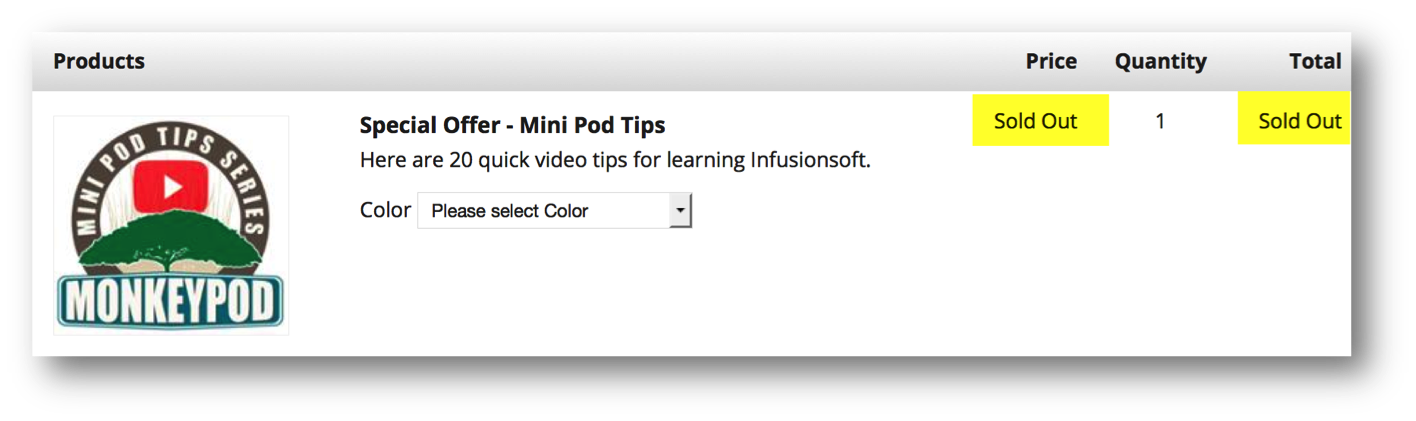 What it does: You can set an inventory for your physical products, and when that inventory is reached the product will be marked as “sold out” and Infusionsoft won’t process any additional orders.
